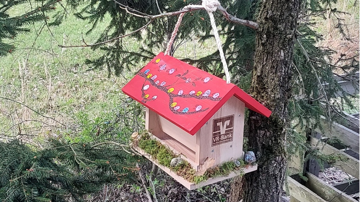 Unter dem Motto "Kinder beobachten Vögel - Unser Vogelfutterhaus" veranstaltet die VR-Bank Taufkirchen-Dorfen eG einen Wettbewerb für Kindereinrichtungen. Das Vogelfutterhaus kann gemeinsam mit den Kindern individuell gestalten werden. Nun heißt es Vögel füttern und